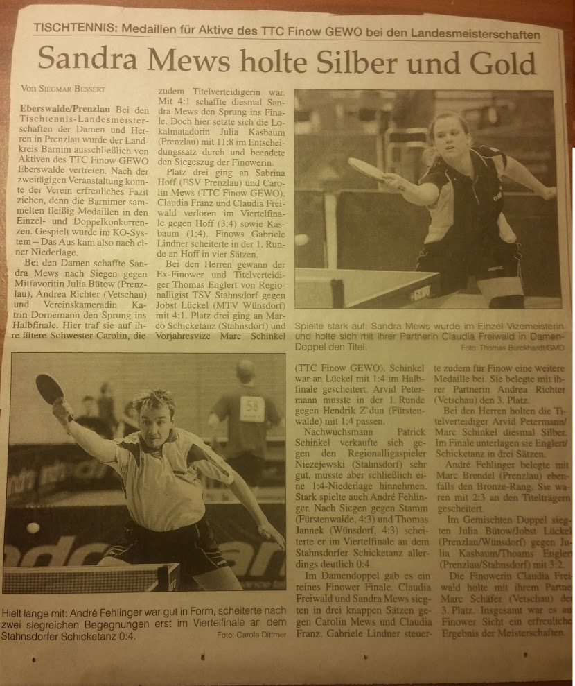 Finower TTC Sonderbeilage in der MOZ zur Saison 95/96: